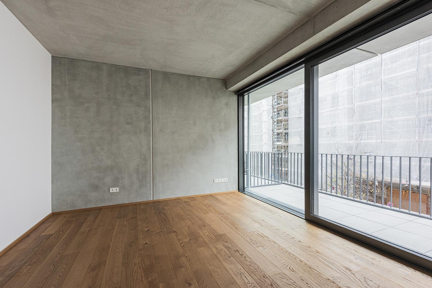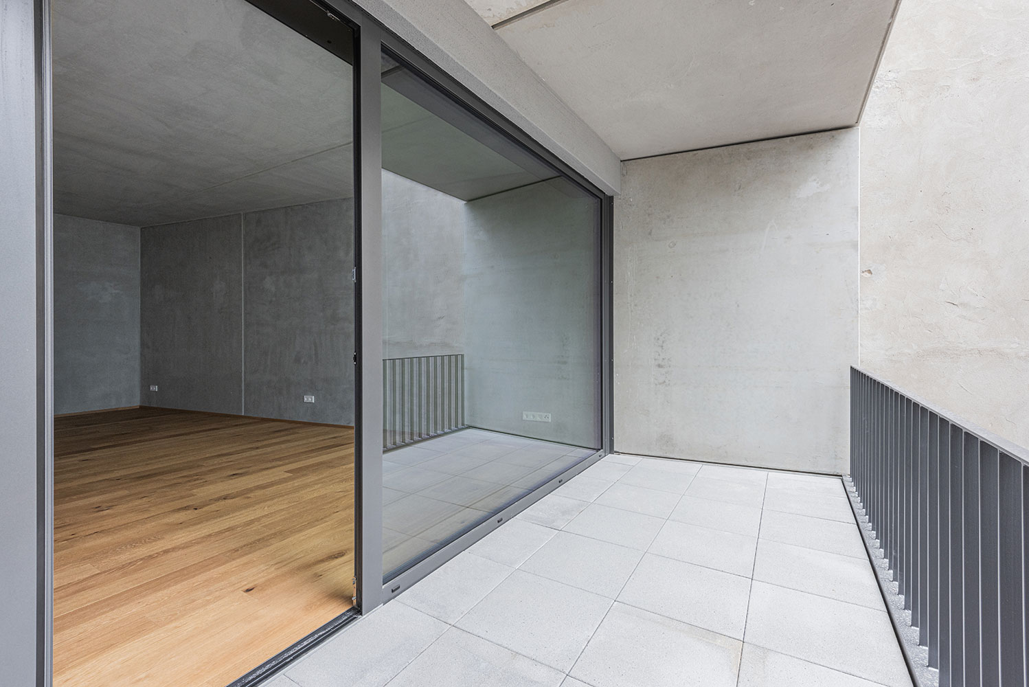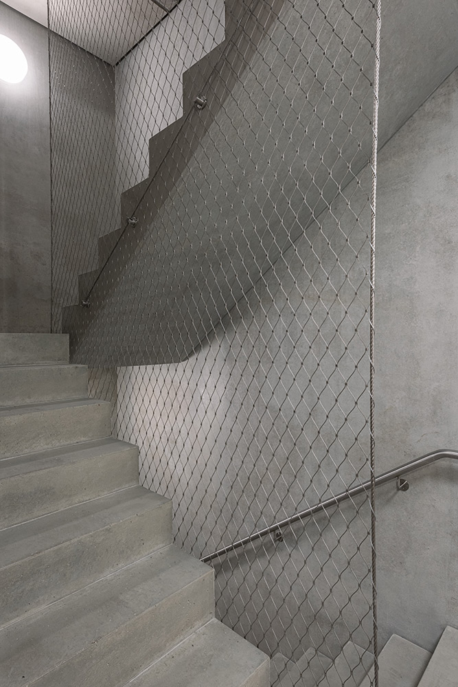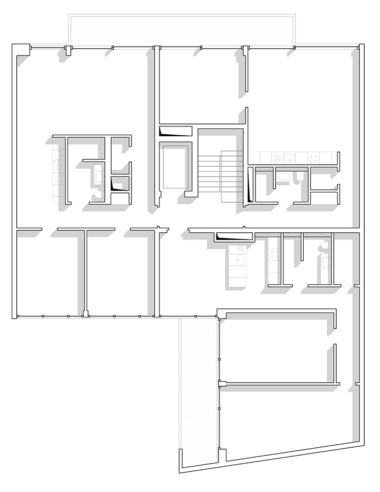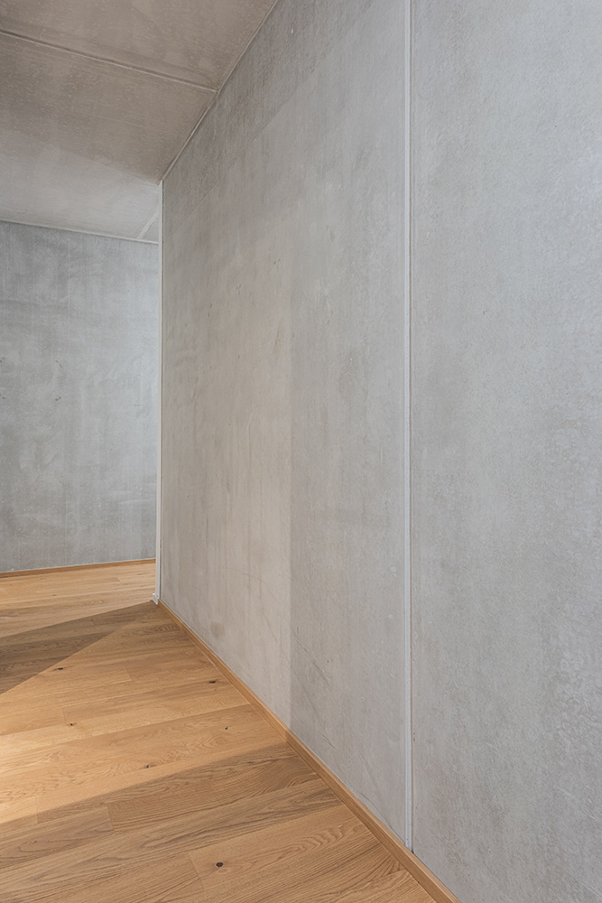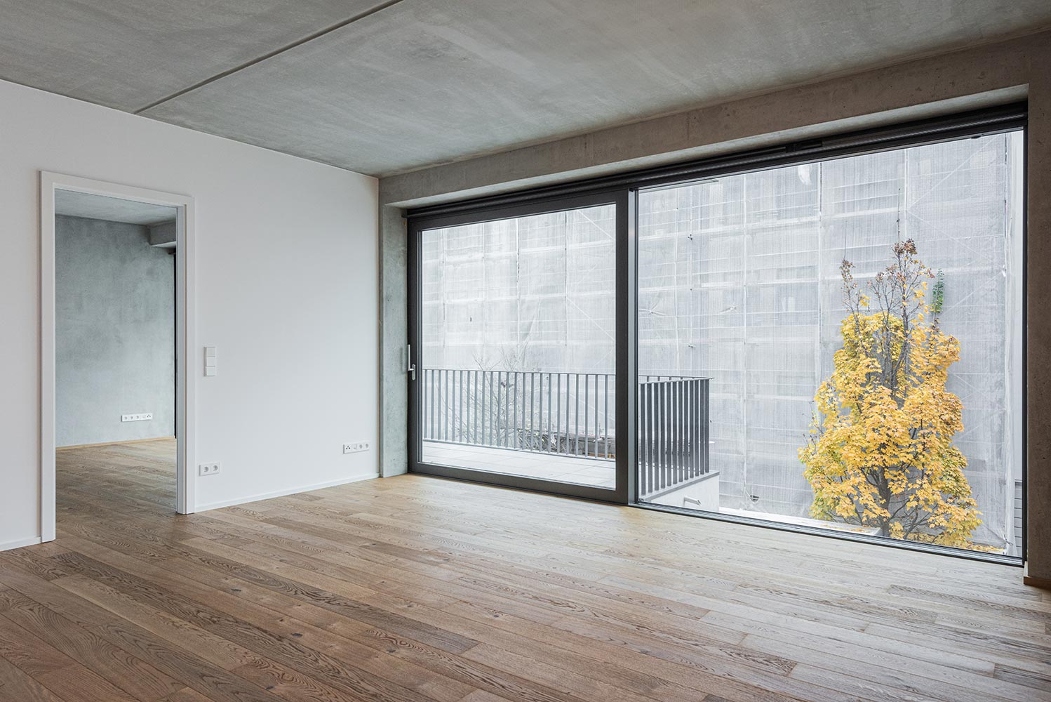 Das Gebäude schließt eine klassische Berliner Baulücke und vermittelt dabei in mehrfacher Hinsicht mit dem heterogenen Bestand. Die östliche Grenzbebauung ist vom klassischen 18m-Raster des Berliner Mietshaus mit flachem Dach geprägt, die westliche von einer mehr als 40m breiten Fassade und schrägem Dach. Der Neubau nimmt die Giebelhöhe des westlichen Nachbarn auf und vermittelt über die Tektonik, also die Verschiebung von Fassadenfronten und Balkonen, mit der straßenprägenden Traufkante des östlichen Nachbarn. Die charakterbildenden Balkone nehmen das horizontale Format des westlichen Nachbargebäudes auf. Durch das vertikale Format der Baulücke kommt es in der Fassade zur Überlagerung und Schichtung von horizontalen und vertikalen Formen. Das Gebäude bietet rund 1.500 Quadratmeter Wohnfläche auf sieben Etagen. Im Erdgeschoss befindet sich eine Gewerbeeinheit, darunter die Tiefgarage für zehn Fahrzeuge. Der innenliegende Treppenhauskern erschließt zwei Wohnungen pro Etage. Die Bäder der Wohnungen sind um den Kern konzentriert. So wird Raum für eine raumhoch verglaste Fassade geschaffen, durch die der Innenraum visuell bis auf die Straße erweitert wird. Die Brandwände werden in Sichtbeton ausgeführt und sind über ihre gesamten Länge erlebbar. Sie bilden das Rückgrat jeder Wohnung.